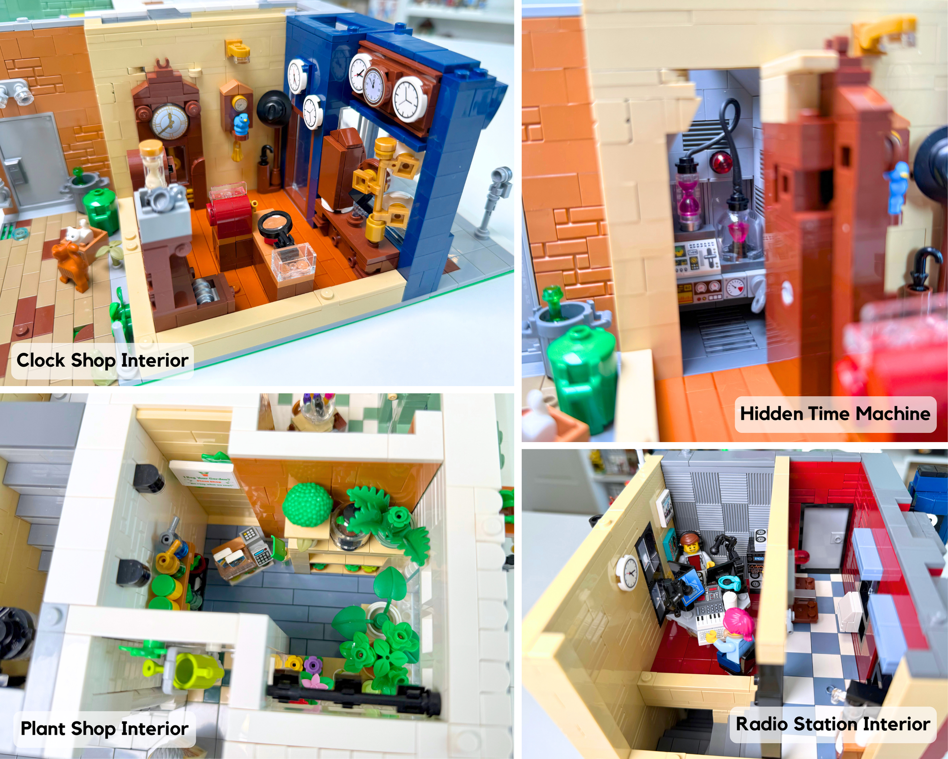 This three-story modular building is home to a mix of shops, businesses, and a cozy apartment. As you construct each level, you’ll uncover a story filled with mystery and charm. From a hidden time machine and secret doors to removable walls, this MOC is truly one of a kind. Built on a 40×32 stud base, it fits seamlessly into any LEGO city, adding downtown character and countless unique details.